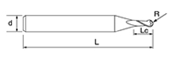 | Tidak. | Diameternya D | Sudut R R | Panjang Seruling Lc | Panjang Keseluruhan L | Shank Dia d | Jumlah Pisau F |