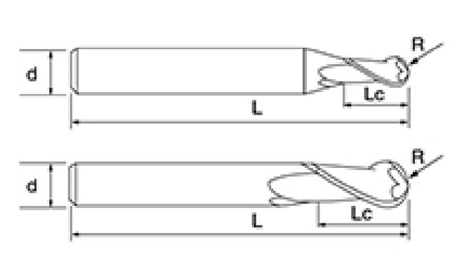 | Seri Alat | Diameternya | radius | Radius Sudut | Panjang seruling | Panjang efektif | Panjang keseluruhan | Shank Dia | |||
