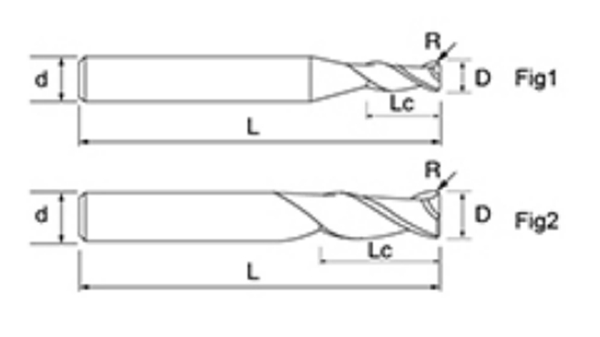 | Seri Alat | Diameternya | radius | Radius Sudut | Panjang seruling | Panjang efektif | Panjang keseluruhan | Shank Dia | |||
