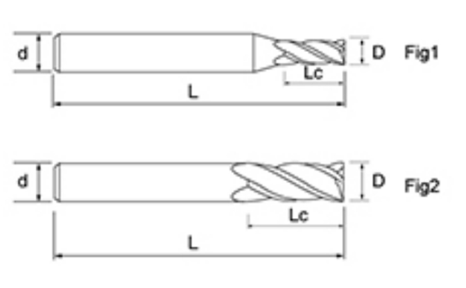 | Tidak. | Diameternyanya D | Panjang Seruling Lc | Panjang Keseluruhan L | Shank Dia d | Jumlah Pisau F |