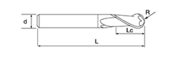 | Tidak. | Diameternyanya D | Sudut R R | Panjang Seruling Lc | Panjang Keseluruhan L | Shank Dia d | Jumlah Pisau F |