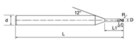 | Seri Alat | Diameternya | radius | Radius Sudut | Panjang seruling | Panjang efektif | Panjang keseluruhan | Shank Dia | |||