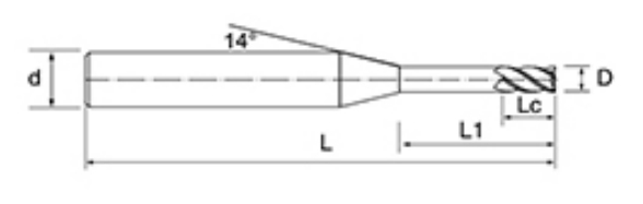 | Tidak. | Diameternya D | Panjang Seruling Lc | Panjang Efektif L1 | Panjang Keseluruhan L | Shank Dia d | Jumlah Pisau F |