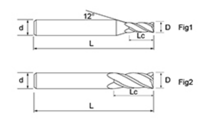 | Seri Alat | Diameternya | radius | Radius Sudut | Panjang seruling | Panjang efektif | Panjang keseluruhan | Shank Dia | |||