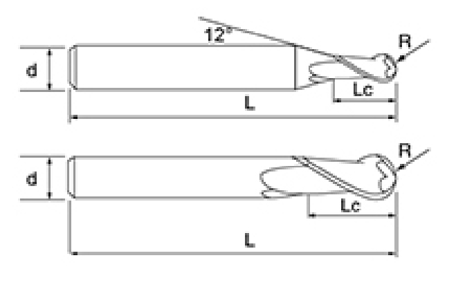 | Tidak. | Diameternya D | Sudut R R | Panjang Seruling Lc | Panjang Keseluruhan L | Shank Dia d | Jumlah Pisau F |