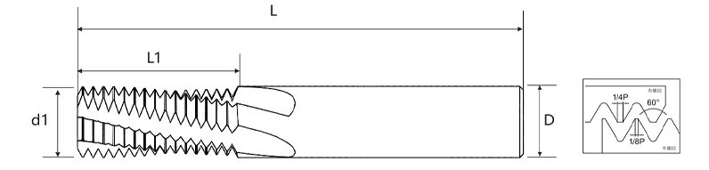 | 1.25 | M12-M14*P1.25 | 10 | 25 | 10 | 75 | 4 | 10.75 | |